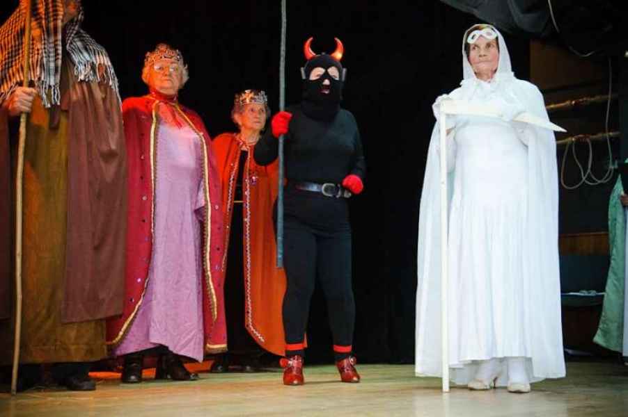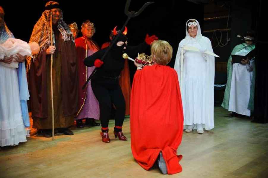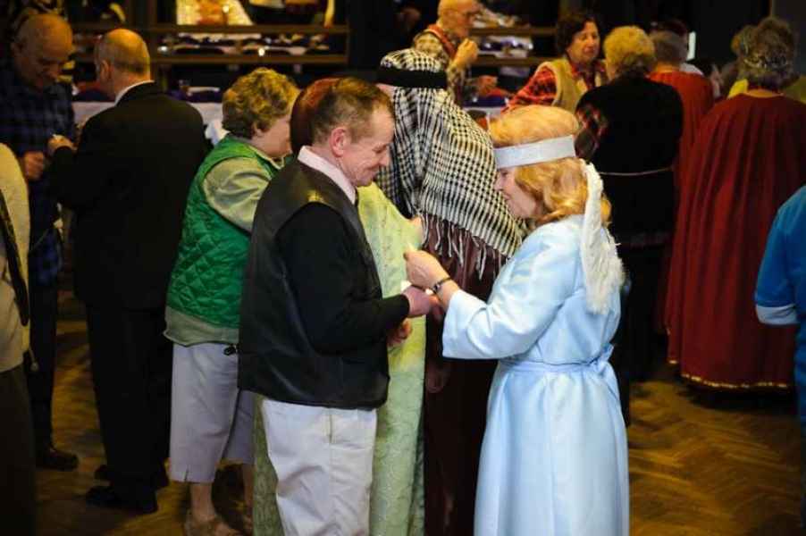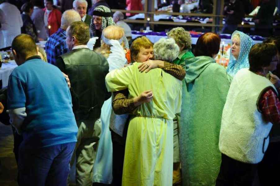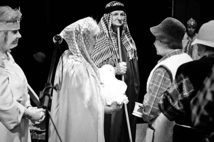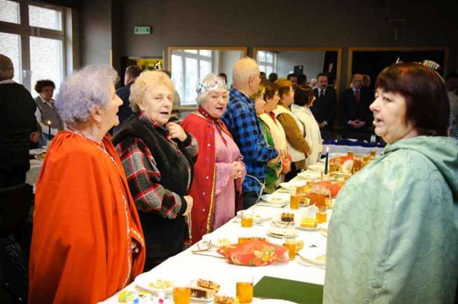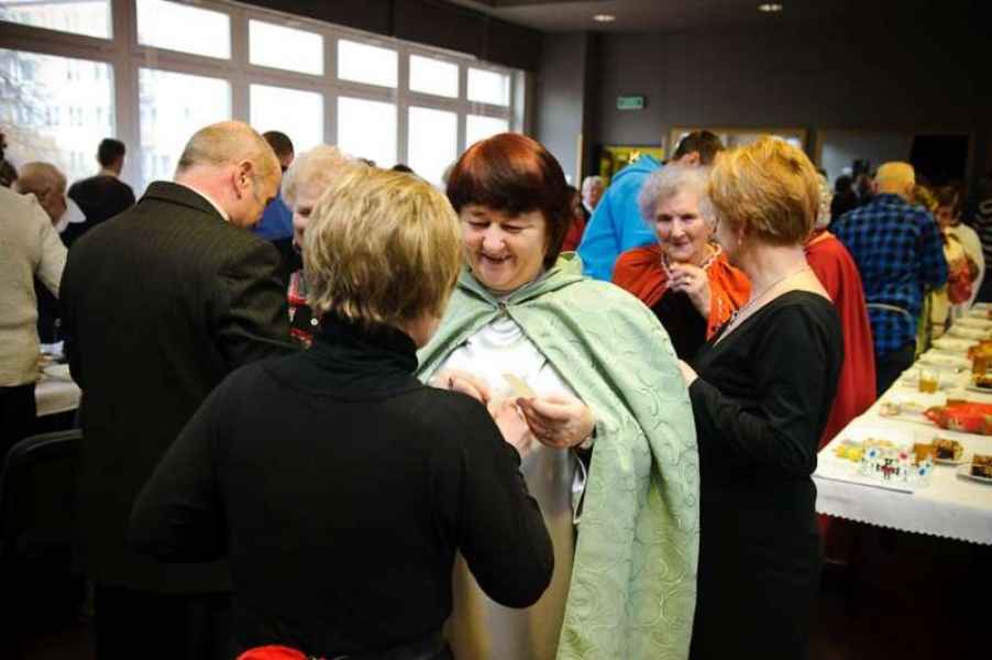 Po modlitwie zebrani dzieląc się opłatkiem złożyli sobie najszczersze życzenia a na senie pojawił sie zespół teatralno-wokalny z Klubu Seniora prezentując przedstawienie jasełkowe po którym wszyscy zasiedli do wspólnego posiłku.