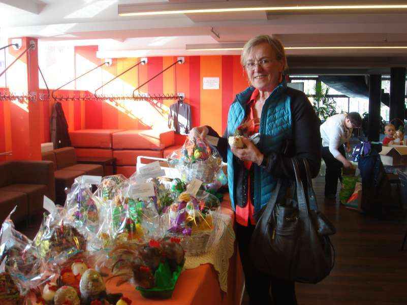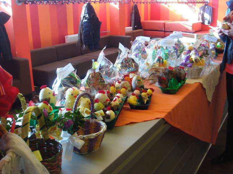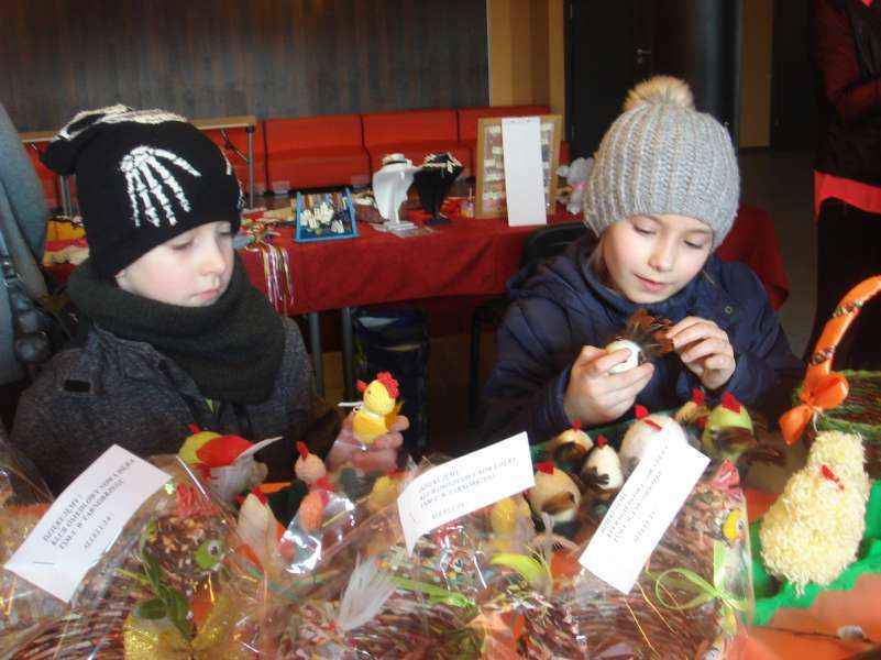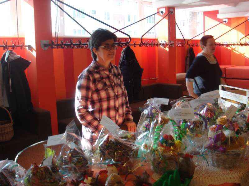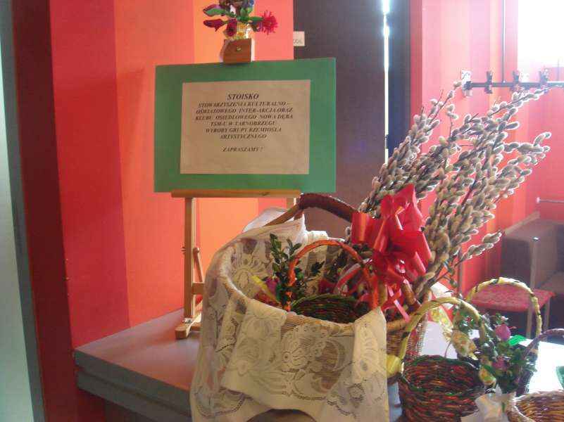Stoisko Klubu Osiedlowego na Kiermaszu Wielkanocnym w Samorządowym Ośrodku Kultury w Nowej Dębie.