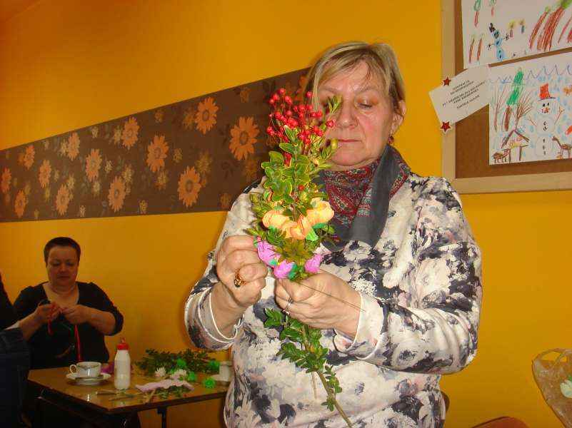 Przygotowania do Wielkanocy w Klubie Osiedlowym Nowa Dęba - wykonywanie palm na kiermasz i na gminny konkurs "Najpiękniejsza Palma" organizowany w Centrum Kultury Lasowiackiej w Cyganach.