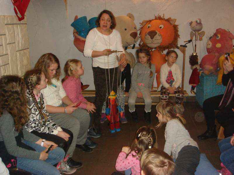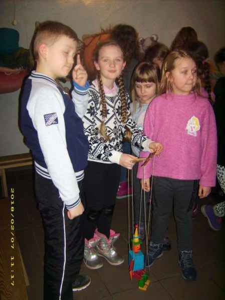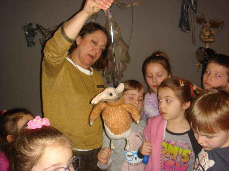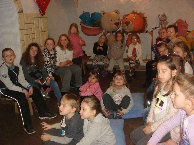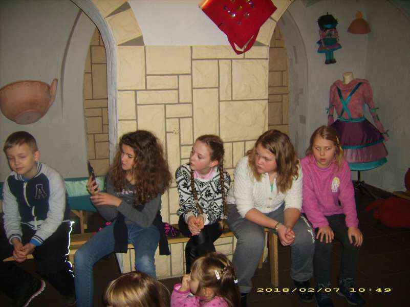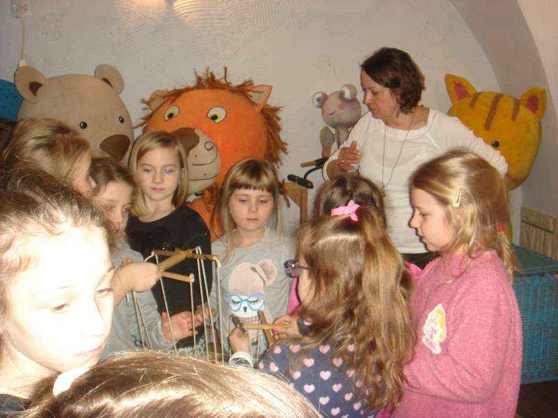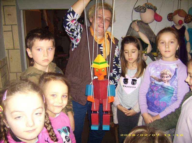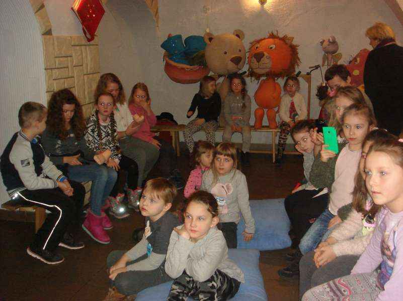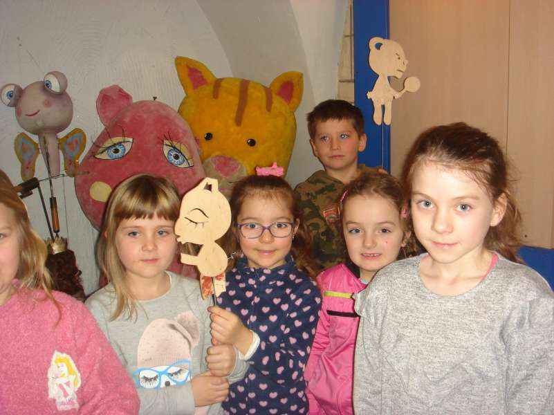 Dzieci oglądały spektakl "Calineczka", wzieły udział w warsztatach teatralnych i zwiedziły Muzeum Dobranocek.
