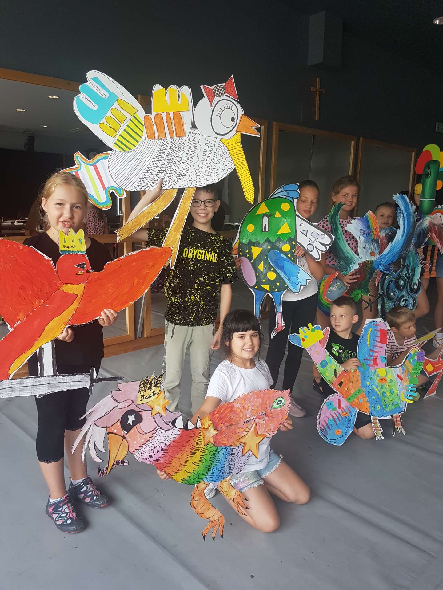 Dzieci doskonaląc swój warsztat plastyczny, miały możliwość wypowiadania się poprzez rysowanie, malowanie, wycinanie, ozdabianie na dużych płaszczyznach papieru. Zainspirowane, tworzyły tematyczne postaci w formie bardziej żartobliwej, oderwanej od prawdziwego wizerunku ptaków.