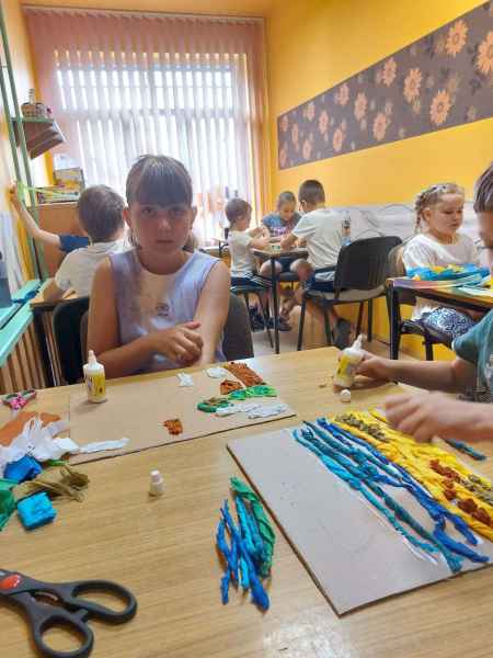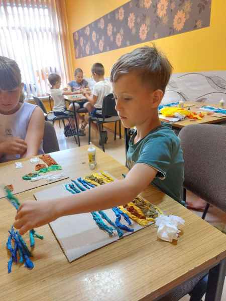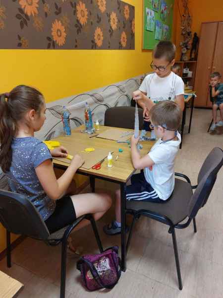 Zakończyły się warsztaty Wakacyjnej Akademii Plastycznej w Klubie Osiedlowym w Nowej Dębie. Co robiliśmy ? Motyle, papierowe obrazy, kory i sowy. Między warsztatmi był czas na zrobienie soku z marchewki i jabłek, taniec oraz gry planszowe.