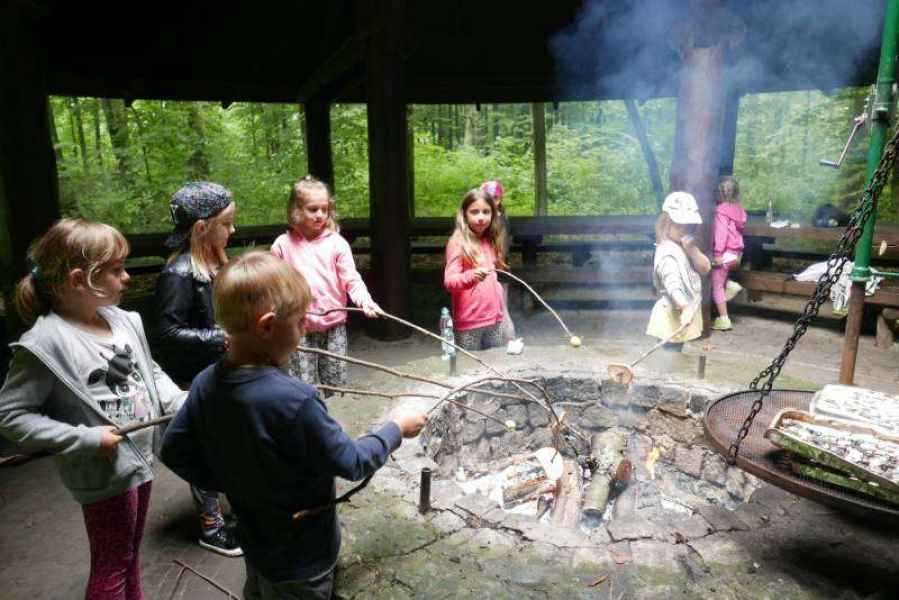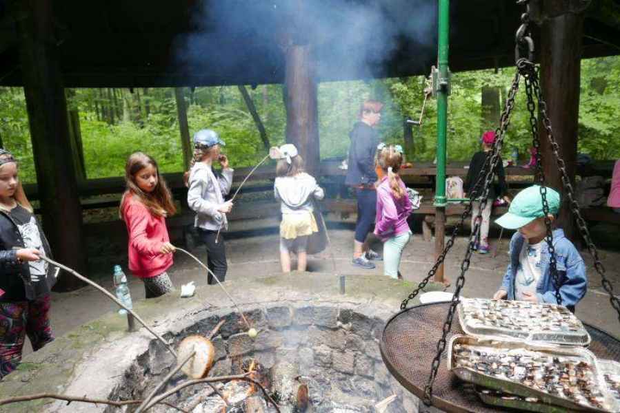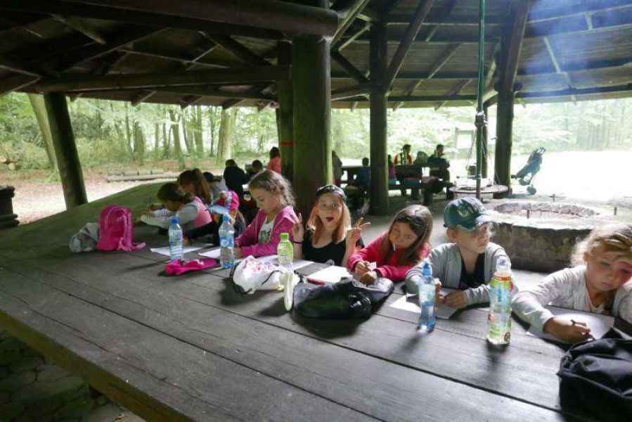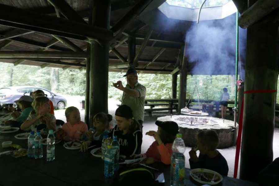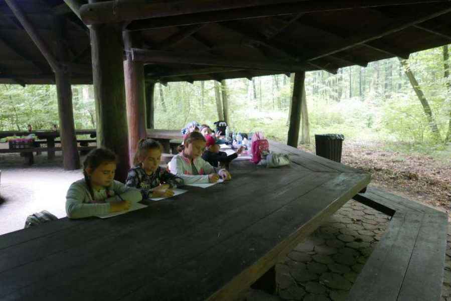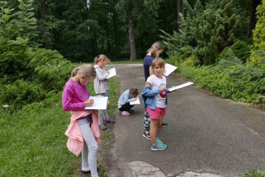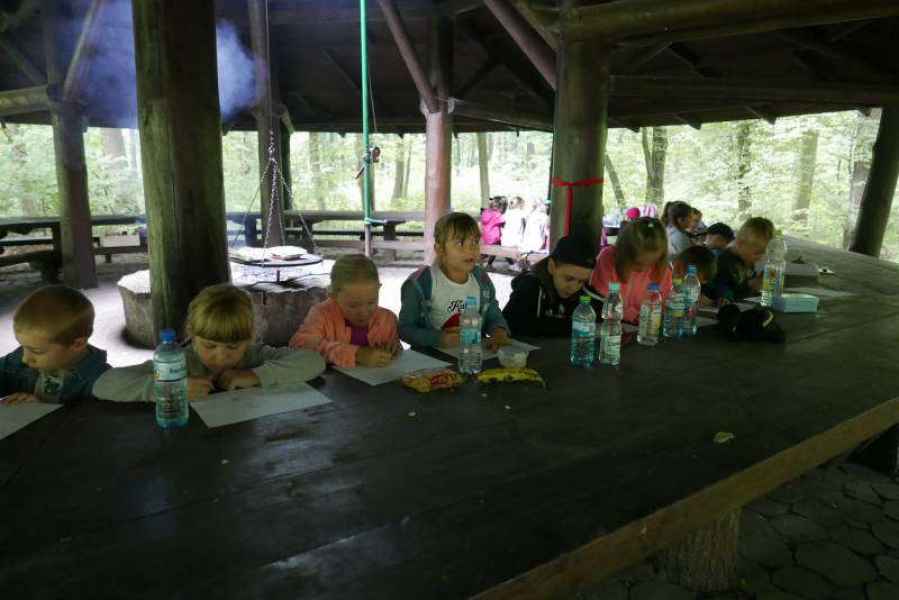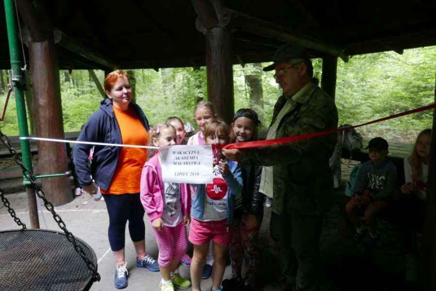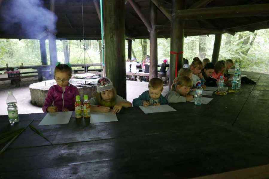 Klub Osiedlowy Nowa Dęba - rozpoczęliśmy zajęcia Wakacyjnej Akademii Malarstwa, korzystając z gościnności leśniczego Pana R. Adamczyka w Leśnictwie Budy Stalowskie. Uroczyście przecięliśmy wstęgę, która była symbolem otwarcia wakacyjnych zajęć. Odbył się spacer ścieżką edukacyjną przez las, konkurs wiedzy przyrodniczej, ognisko, pogadanki i plener malarski. Powstały szkice lasu i Dworku Myśliwskiego.